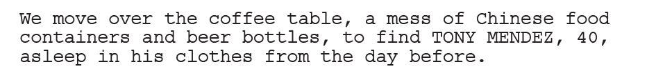 Tony Mendez – “40, asleep in his clothes from the day before.”