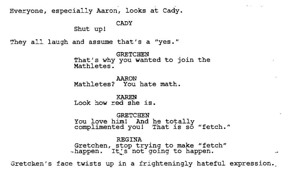 Even if it isn’t the final draft, most of the ingredients are here. For a screenplay titled Mean Girls, it’s got plenty of heart. Fey has penned a classic that, decades later, still resonates and is endlessly quotable.