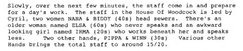 PTA doesn’t go into detail about the fashion world and the clients; he indicates what needs to be said in brackets, or provides a general direction for where it needs to go. Here’s an example on pages 19-20:
